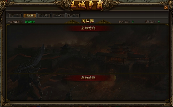 报名结束后,赛区内所有公会随机配对,进行淘汰赛;具体对阵安排可在游戏内“王城争霸”的“淘汰赛”界面查看;