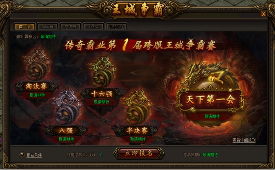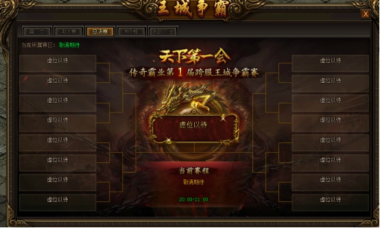 1.具有参赛资格的公会,比赛当天20:00可通过本服土城安全区的王城争霸NPC进入跨服土城,参与比赛;不具有参赛资格的公会无法进入;