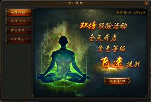 活动期间,每天20:00篝火开启,80级及以上玩家可从*-篝火使者NPC处进入场景,每5s即可获得大量经验奖励;