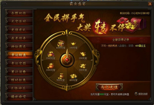 活动期间,充值并消费一定元宝即可使用幸运转盘,获得大量元宝道具,使用获得元宝后即可前往商城内购买珍稀道具,精彩不容错过。