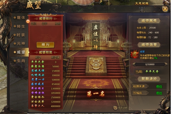对威望等级低的玩家可额外增加7%的伤害,伤害随威望等级提升而增加
