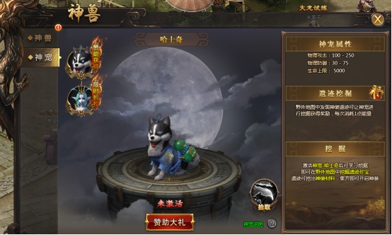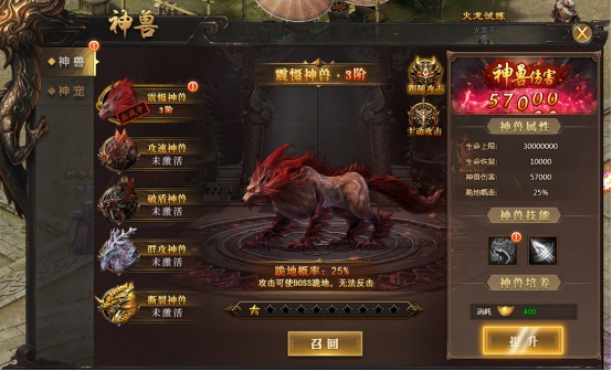神兽可通过赞助礼包获得,可增加震慑BOSS跪地的几率;