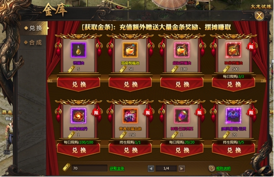 花费金条兑换道具,同时可通过摆摊赚取金条